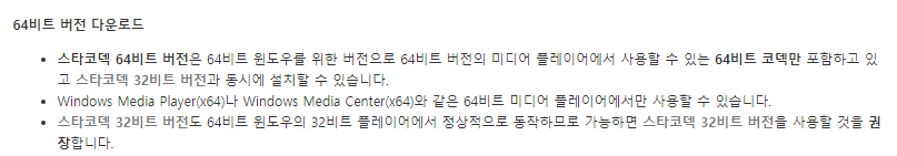 워낙에 중요해서 제가 다시 언급을 하고자 합니다. 아마 다들 기존에 사용을 하시던 여타의 코덱이 있으리라 생각이 되는데요. 다른 종류의 코덱이 설치가 되어있는 상태에서 스타코덱을 설치하게 되는 경우 서로가 충돌을 일으켜서 제대로 작동이 되지 않을 수가 있다는 것입니다. 즉 곰플레이어 통합코덱을 설치하고자 하는 경우 기존에 설치가 되어있던 코덱부터 확실하게 삭제를 해주신 다음 새롭게 설치를 해주셔야 한다는 것인데요.