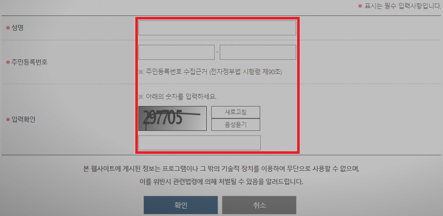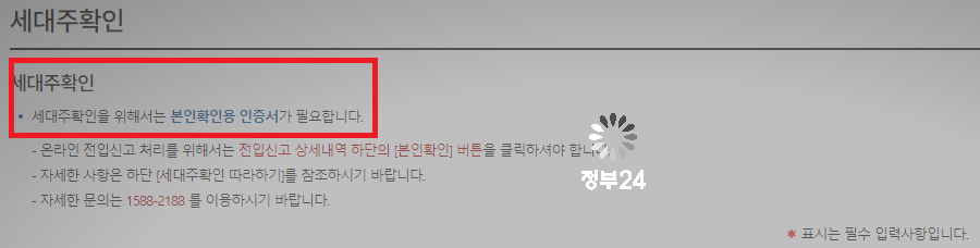 이 두가지가 준비되어 있다 하시는 분들이라면 정확한 정보의 입력을 통해서 세대주를 확인하시는 것이 가능하게 되겠습니다.