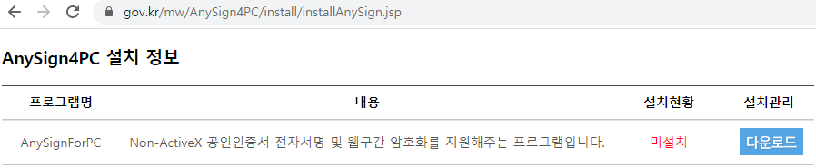 * anysignforpc 프로그램 설치가 되어있어야 합니다.