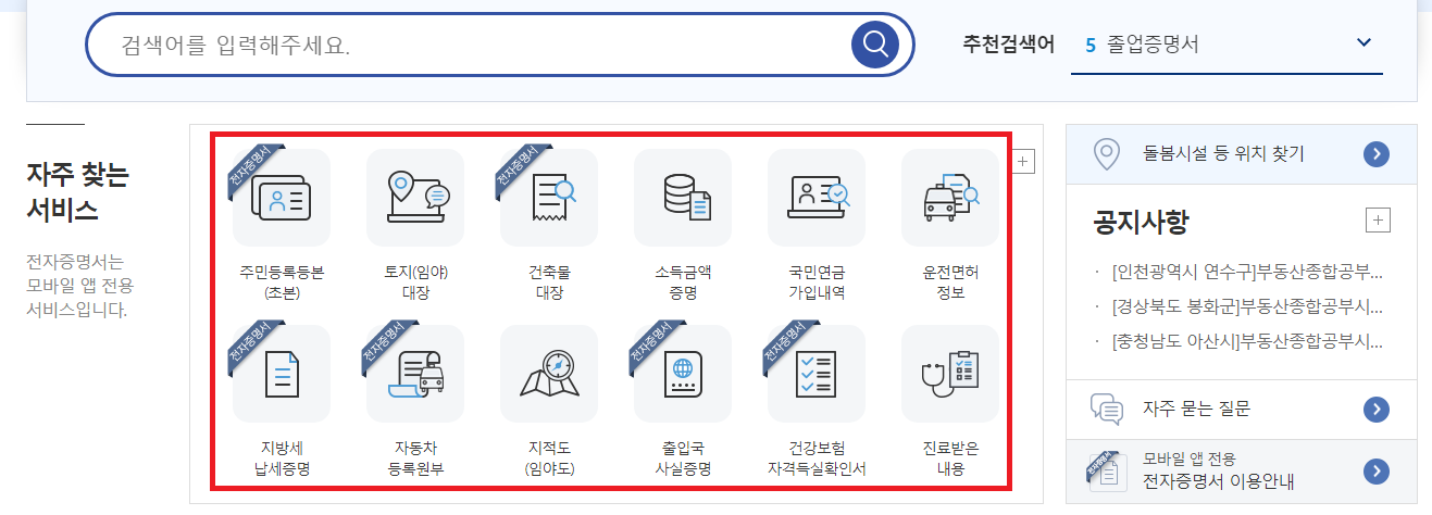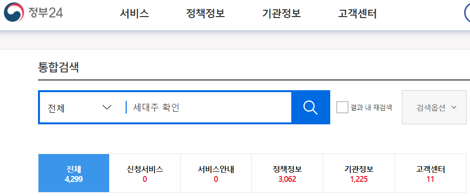 <www.gov.kr> 주소 직접 타이핑하셔서 입력을 하셔도 좋고 혹은 저처럼 자신이 주로 활용하는 검색사이트를 이용하셔도 좋습니다. 아무튼 어떠한 방법이 되었건 정부24로만 제대로 이동을 해주시면 되겠는데요. 다들 이동을 하셨는지요?