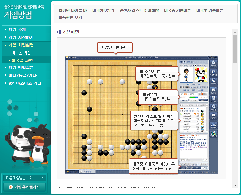 게임 시작이나 방법 등등 한게임바둑 바로가기 서비스 활용에 있어서 필요한 모든 정보를 확인할 수가 있었으니 한게임을 통해서 처음 바둑을 플레이 하시는 분들이라면 본격적으로 게임 즐기시기 이전에 한번쯤 참고를 해보시는 것도 좋지 않을까 하는 생각을 해봅니다.
