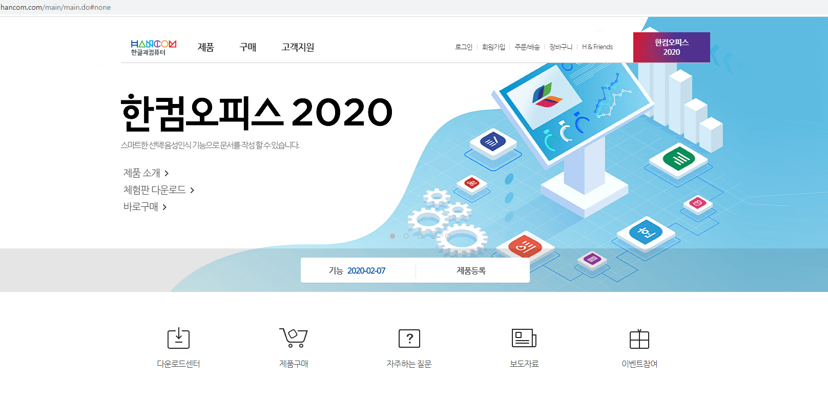 <www.hancom.com> 혹시나 해서 주소도 함께 알려드리니 확인을 해주시면 되지 않을까 하는데요. 아래에서 보시는 것이 바로 메인화면의 모습이라고 할 수가 있겠습니다. 제가 보여드리는 그림과 똑같은 화면을 다들 보고 있으리라 생각이 되는데요.