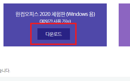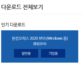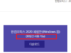 한컴오피스 2020 체험판 아래에 있는 다운로드 버튼을 눌러주시면 되겠습니다. 눌러주시고 새로운 안내창 하나가 나오게 되는 것을 확인해보실 수가 있으실텐데요.