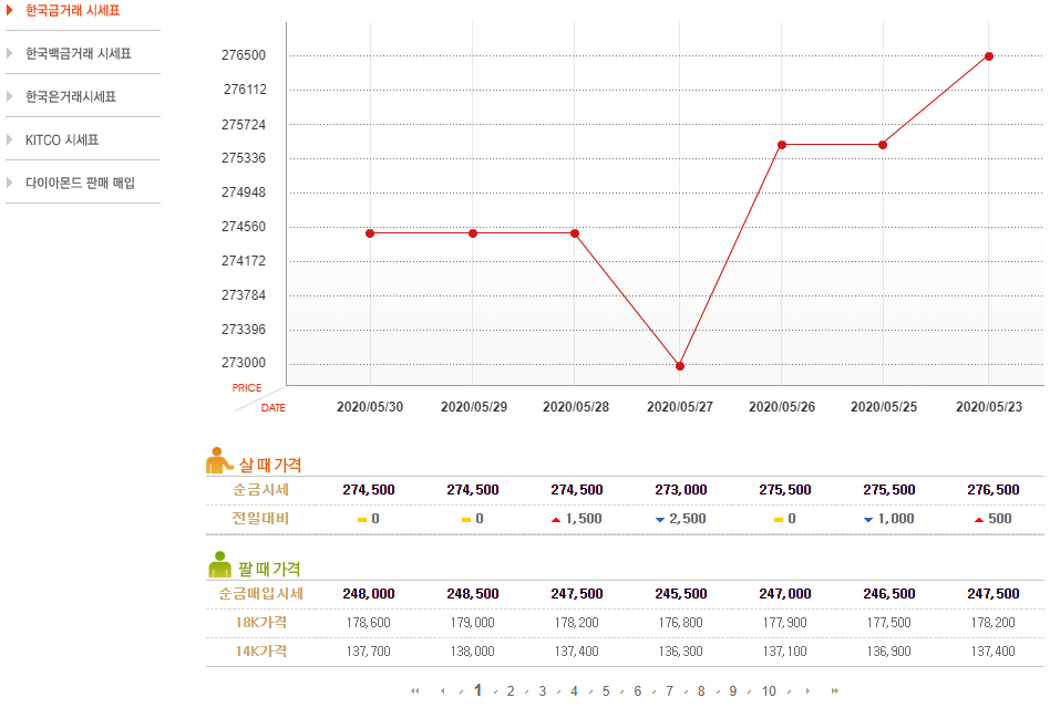 18k 금시세 당일것만 확인을 할 수가 있는 것이 아니라 과거의 시세까지 확인을 할 수가 있다는 것인데요. 금 시세라는 것이 다양한 요소에 의해서 달라지지만 앞으로의 가격을 예측하는데 있어서 과거의 그래프를 보시는 것도 많은 도움이 될 수 있다는 것입니다.