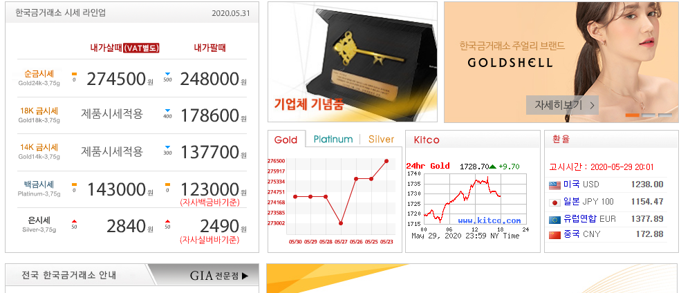 그래서 말인데 한군데 알고 있으시면 좋을법한 곳이 있는데요. 다름 아닌 한국금거래소라는 곳이 되겠습니다. 여기에서 여러분들이 확인을 하고자 하셨던 18k 금시세 확인이 바로 가능하다고 할 수가 있겠는데요. 멀리 돌아가실 필요도 없고 지금 바로 한번 보여드리도록 하겠습니다.