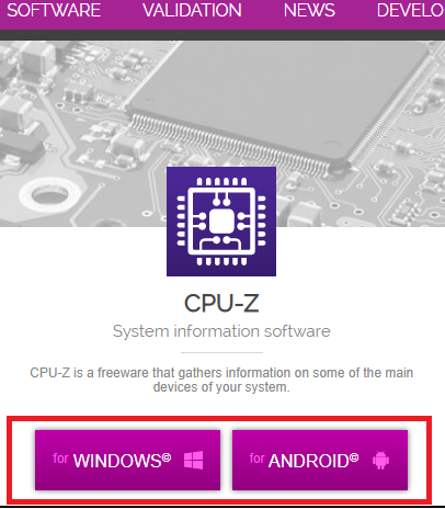 아무튼 아마 이글을 보시는 분들이라면 컴퓨터 사용을 체크해보고자 cpu-z 다운로드를 하고자 하시는 것이 아닐까 생각이 됩니다. 컴퓨터에서 사용을 하고자 하시는 분들이라면 두가지 메뉴 중에서 <windows> 버튼을 선택해주시면 되겠습니다.