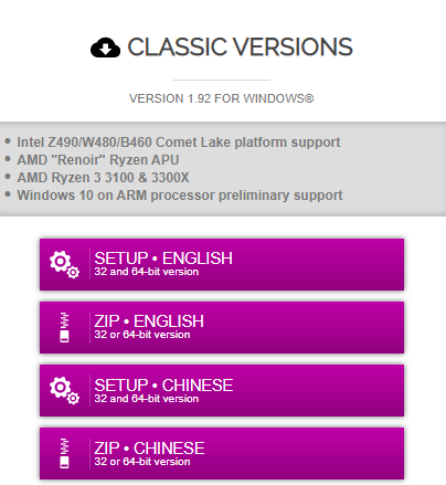 기본적으로 언어는 영어와 중국어 두가지로 제공이 되고 있으며 중요한건 설치해서 사용하는 버전의 파일과 설치를 하지 않고서 바로 사용을 할 수 있는 파일 이렇게 두가지로 나누어서 제공을 하고 있다는 사실을 알 수가 있는데요. 뭐가 더 좋다고 이야기를 할 수는 없지만 대부분의 분들이 zip englist 버전을 통해서 cpu-z 프로그램을 사용하고 있지 않으신가 하는 생각을 해봅니다.