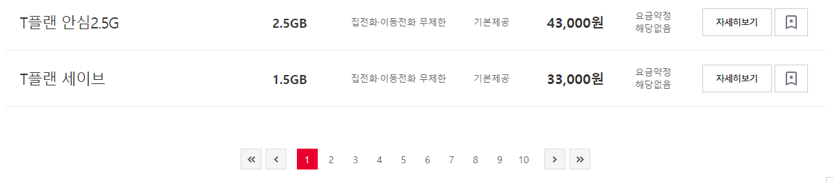 위와 같은 방식으로 어떠한 종류들이 있는지 확인을 하고 있으실텐데요 .앞에서 이야기를 한 것처럼 한두가지가 아니라고 할 수가 있겠습니다. 정말 엄청나게 다양한 종류들이 많은지 확인을 하실 수가 있으실텐데요. 모든 skt 요금제를 확인하기 위해서는 무려 10페이지나 확인을 해야할 만큼 그 종류가 상당히 많다고 할 수가 있겠습니다.