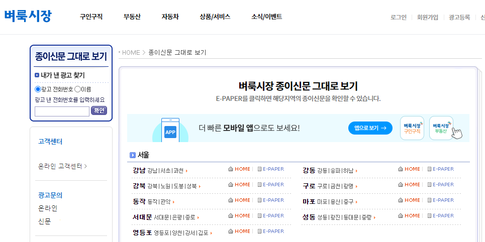 벼룩시장 종이신문그대로보기