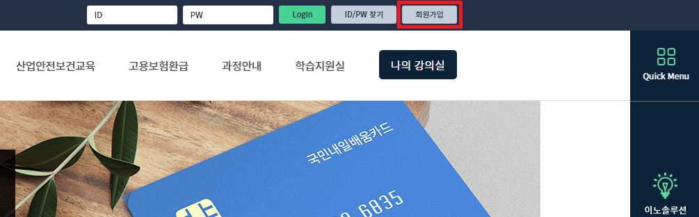 두가지의 방법 중 한가지의 방법을 통해서 본인임을 인증하게 되고 아이디를 만드는 것이 가능하겠는데요. 여타의 다른 곳에서 아이디를 만드는 과정과 별반 다를 것은 없으니 아마 이부분에 대해서는 간단하게 이렇게 알아보고 넘어가도 충분하지 않을까 생각이 됩니다. 아무튼 아이디를 생성하셨다면 로그인을 해주시면 되겠는데요. 로그인까지 마무리가 되셨다면 이제는 이노솔루션 온라인 교육센터에 어떠한 강좌들이 있는지 확인을 해주셔야 할 차례가 아닌가 하는데요.